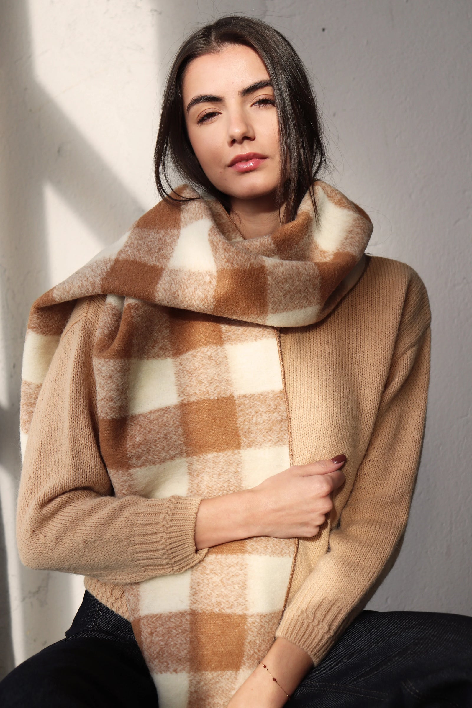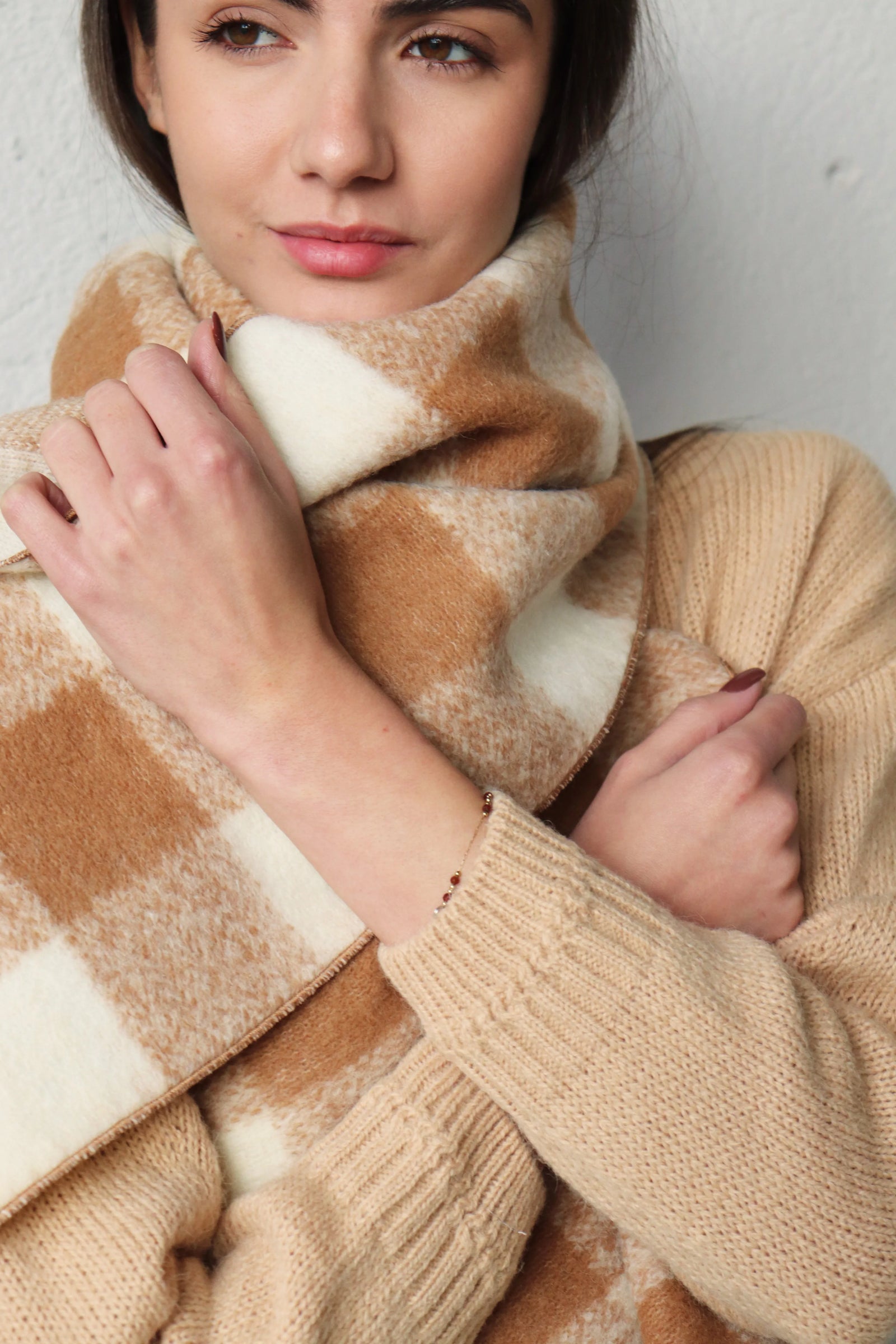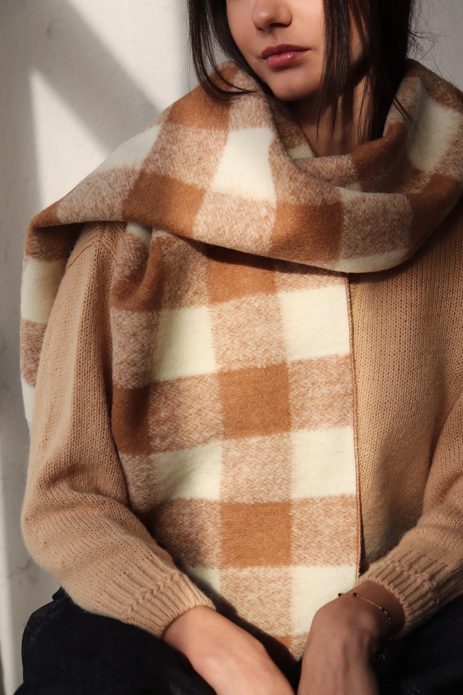 Може да се носи по различни начини – увит около врата или преметнат върху раменете, за да ви предпази от студа.