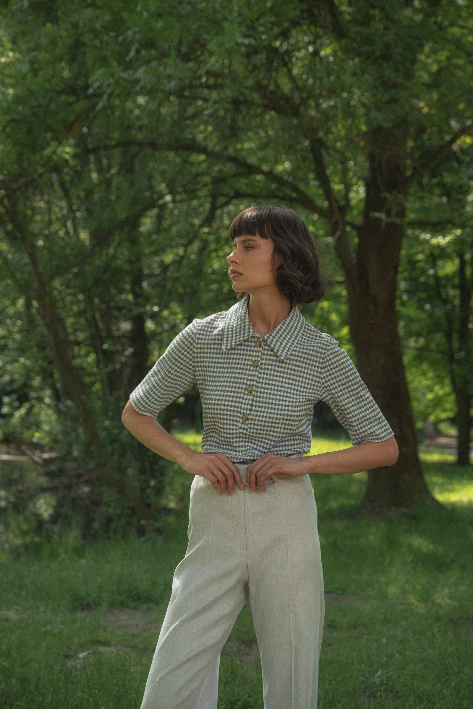 Моделът е с ръст 175 см и носи размер S