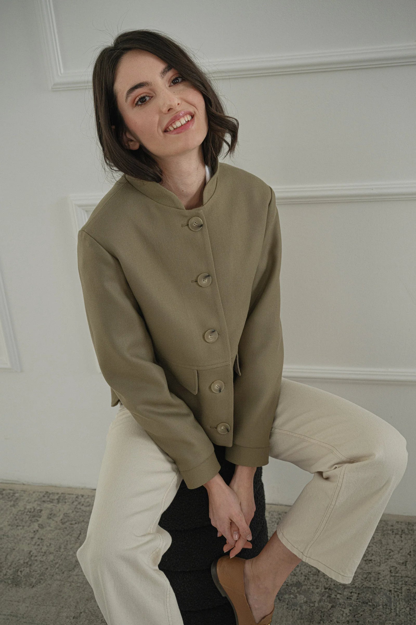 Моделът е с ръст 175 см и носи размер S