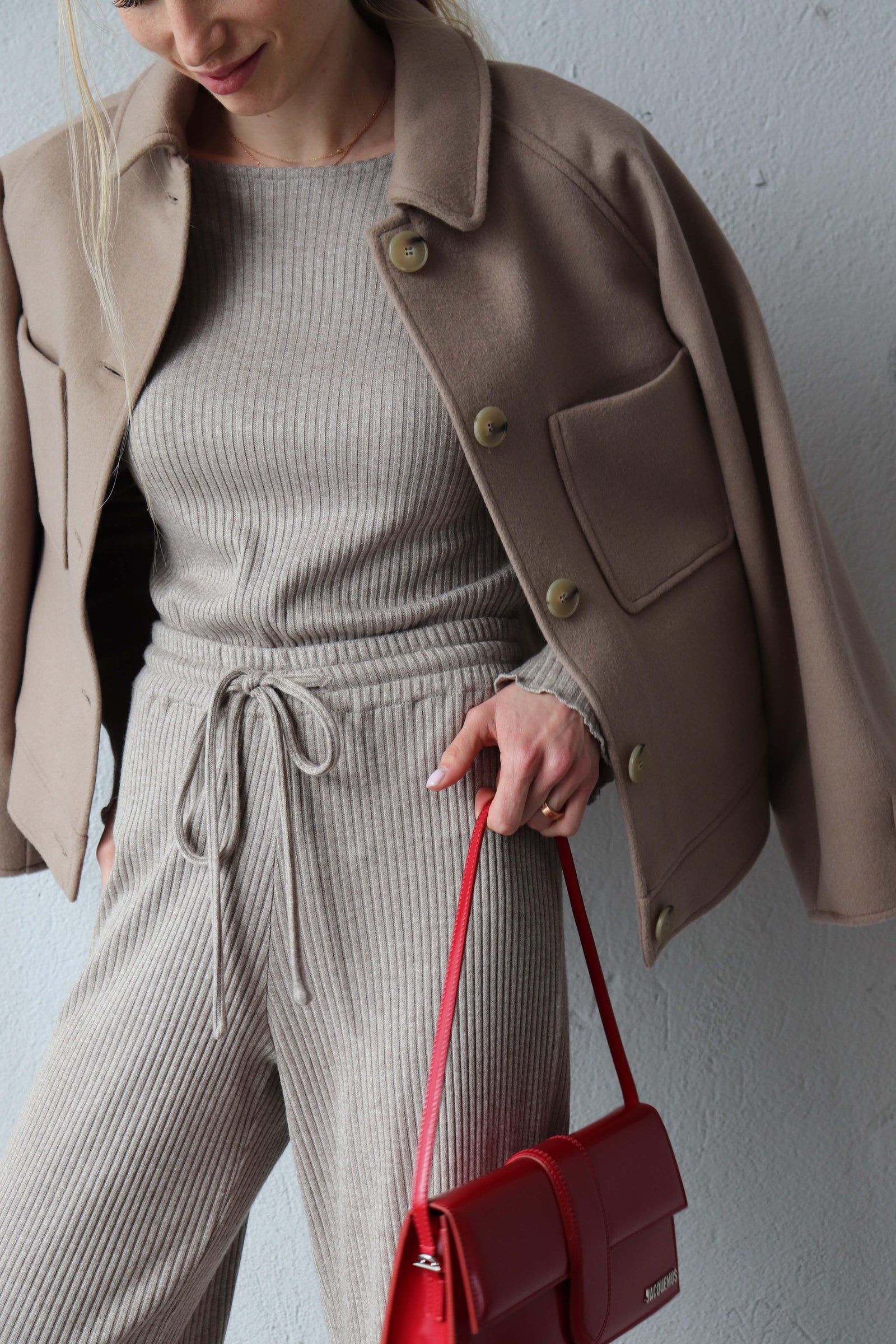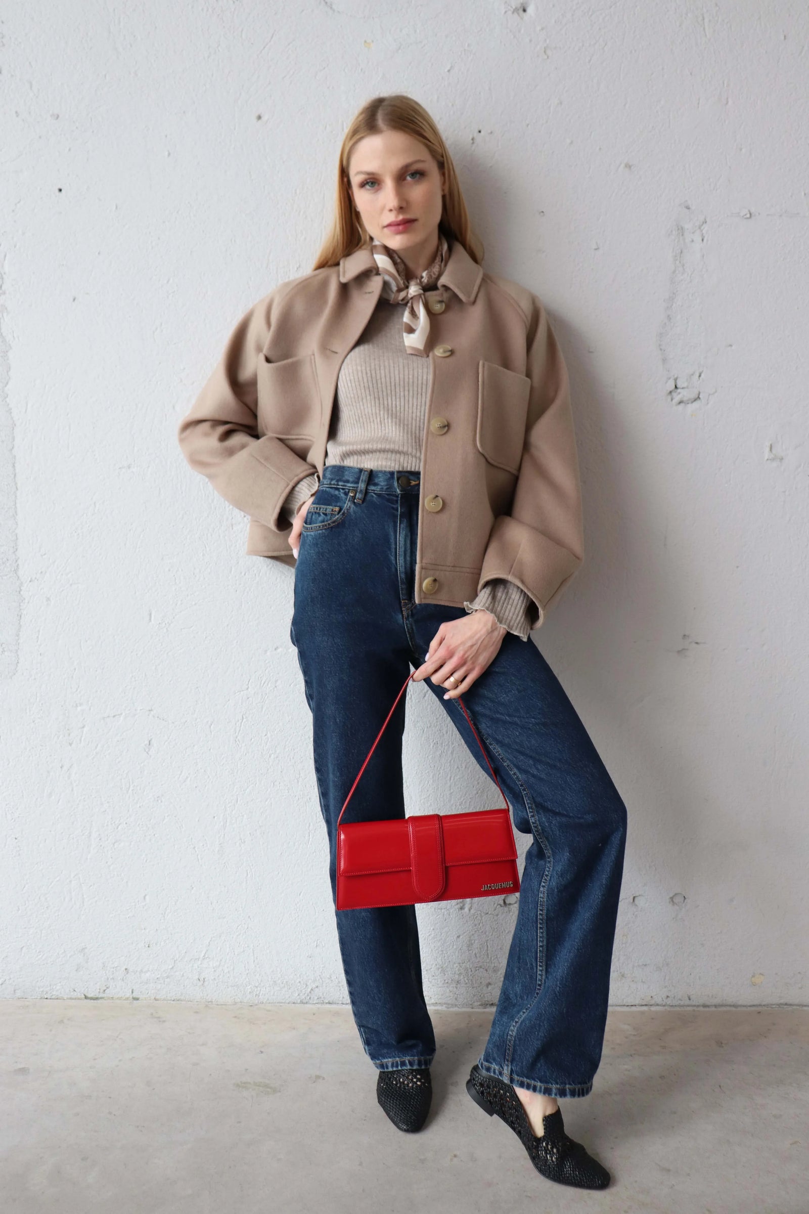 Съчетава се с деним и фина блуза за балансирана и спокойна визия