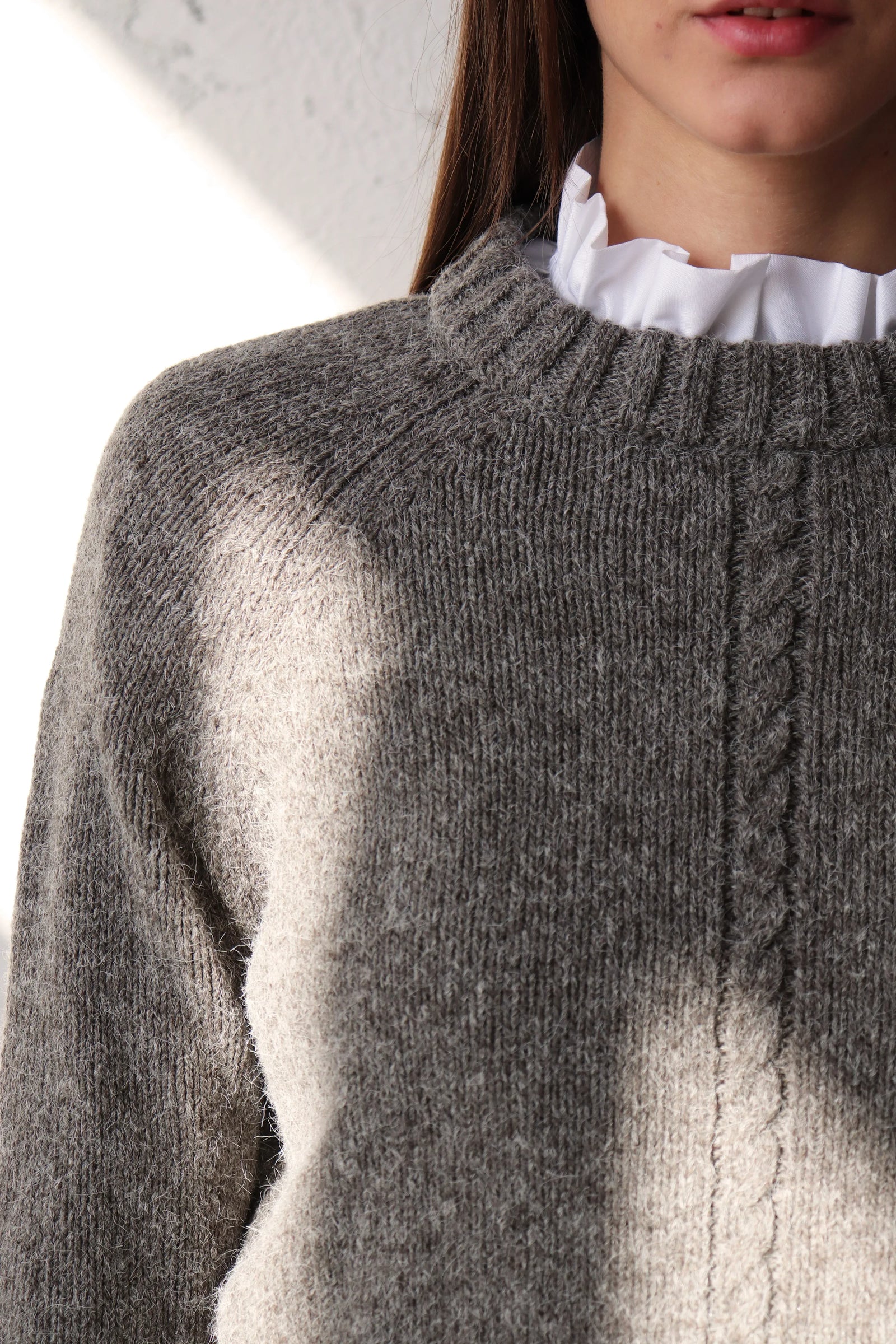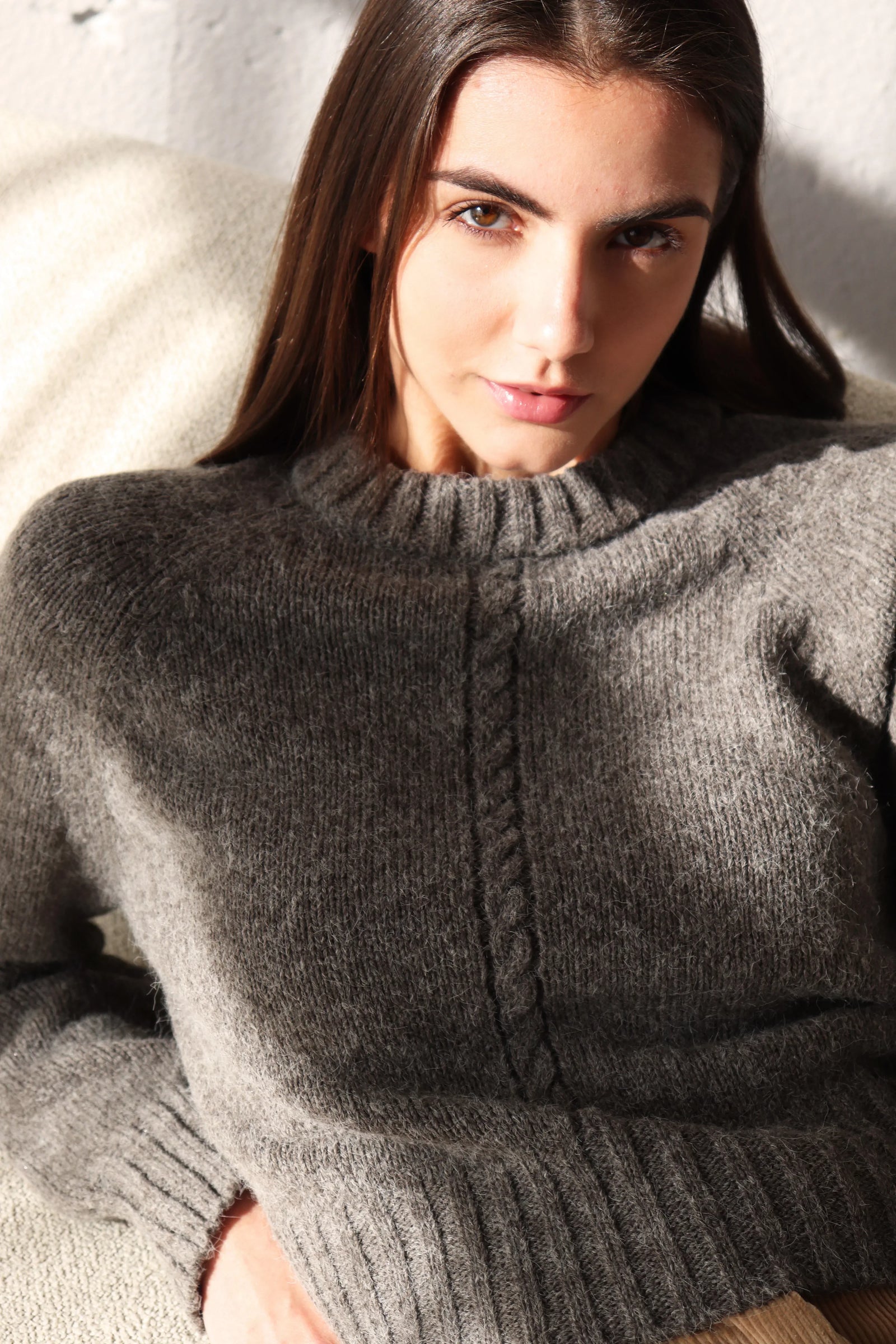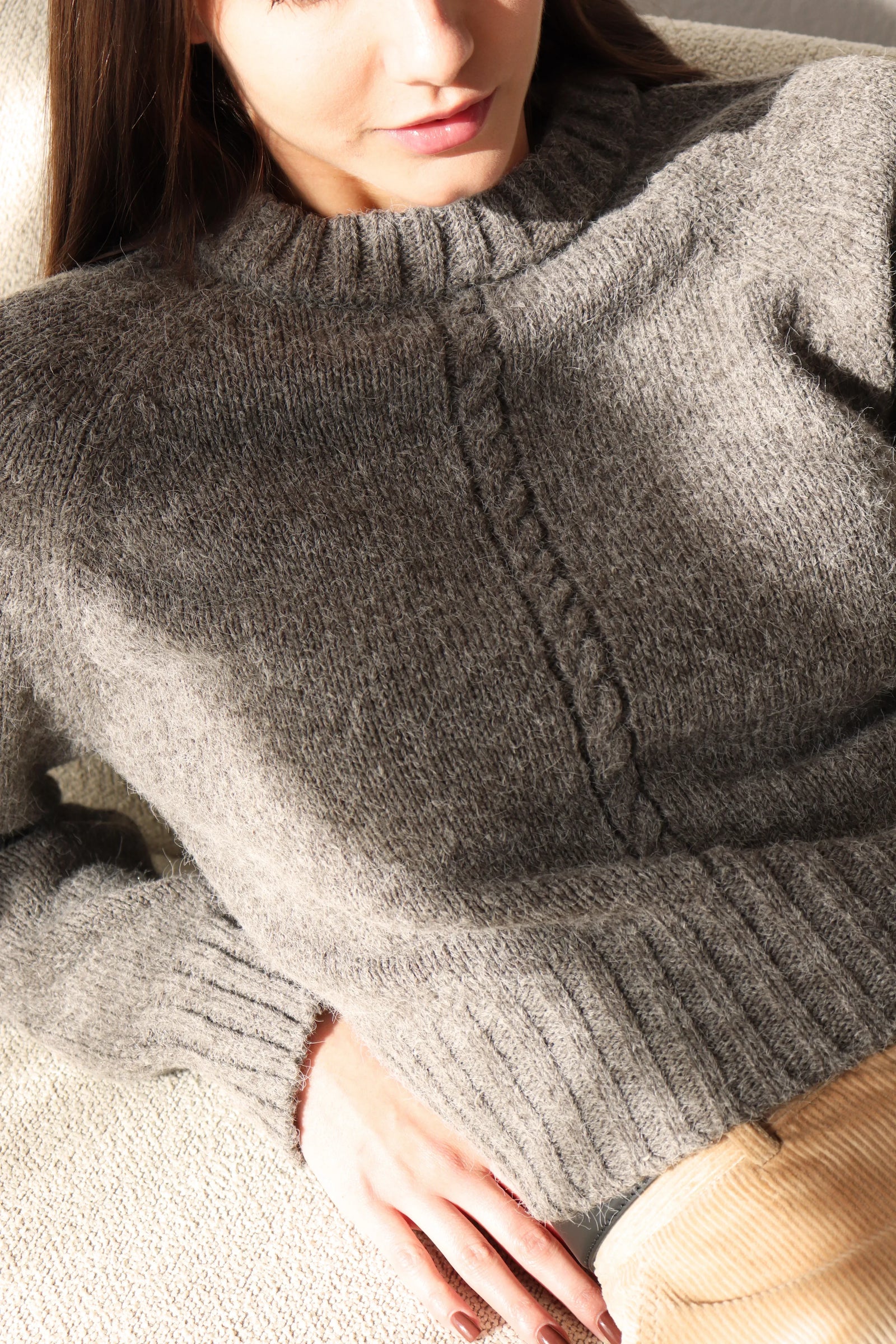 За този модел избрахме висококачествена прежда от мерино вълна, бейби алпака и мохер — въздушна, топла и изключително приятна на допир.