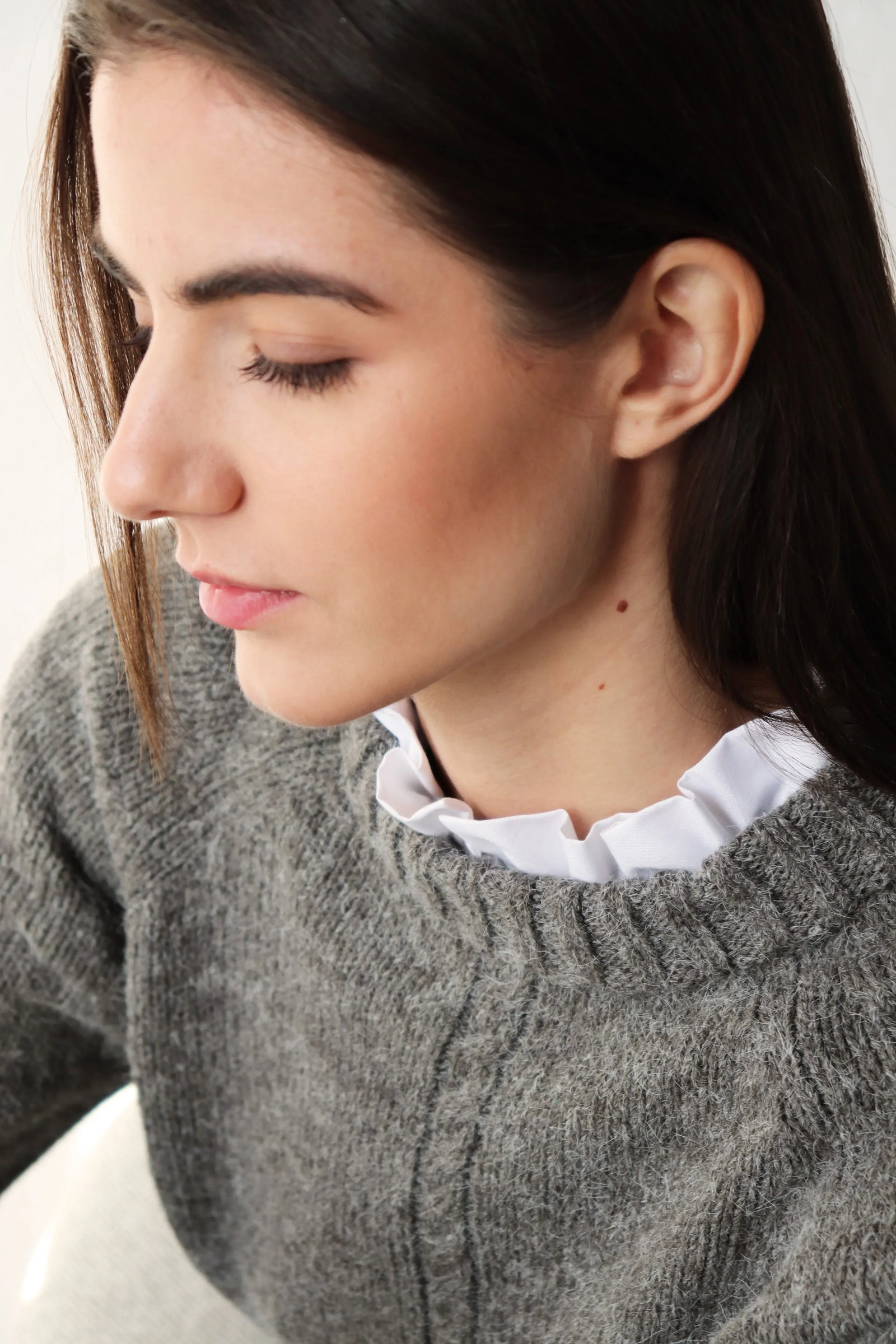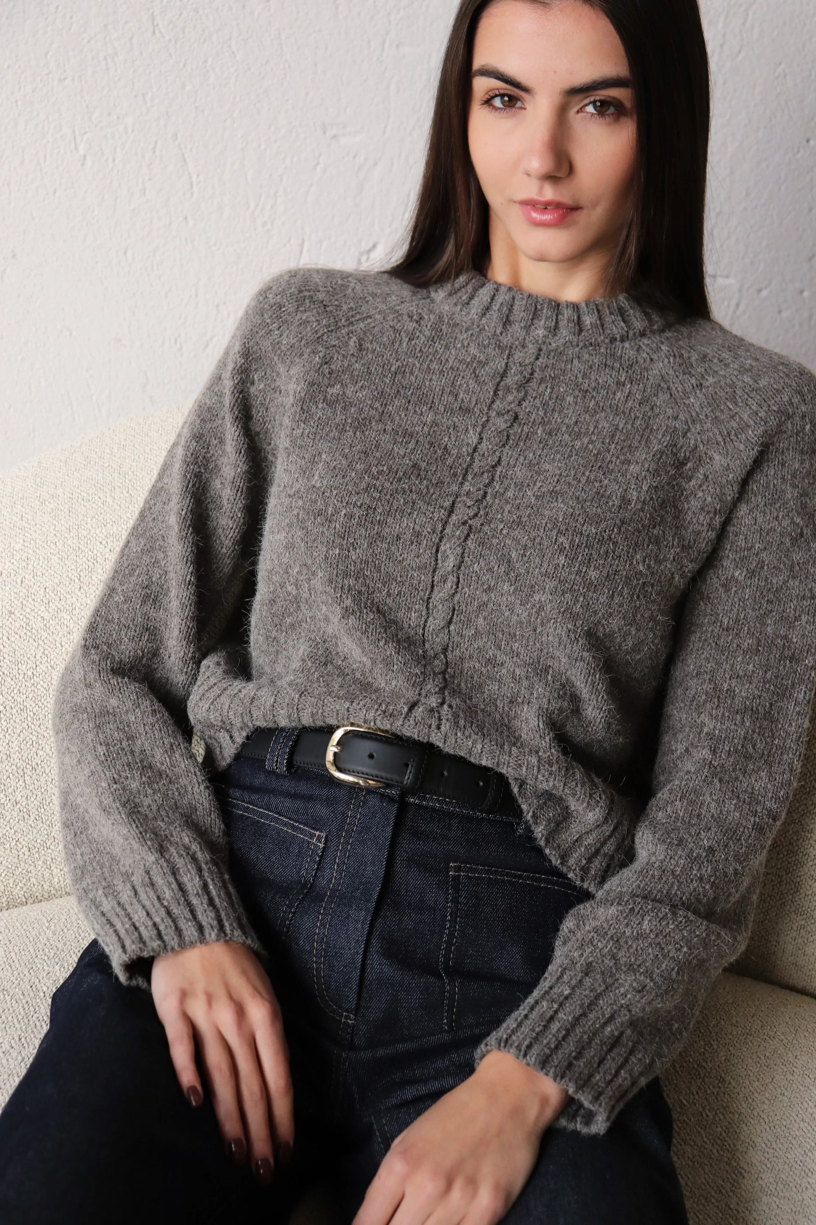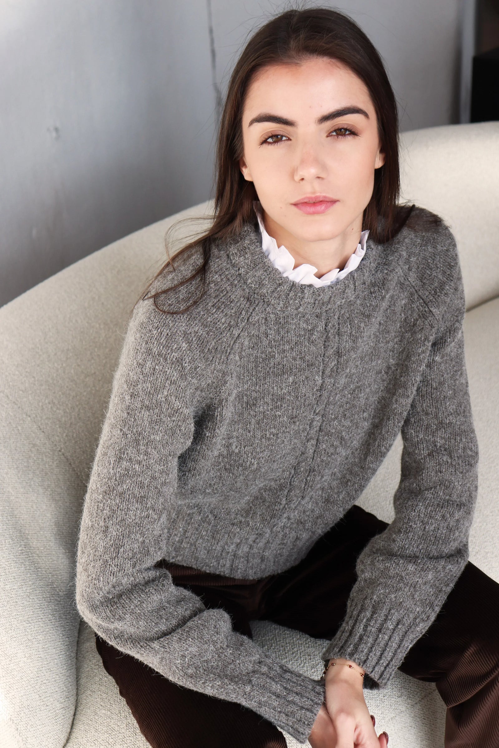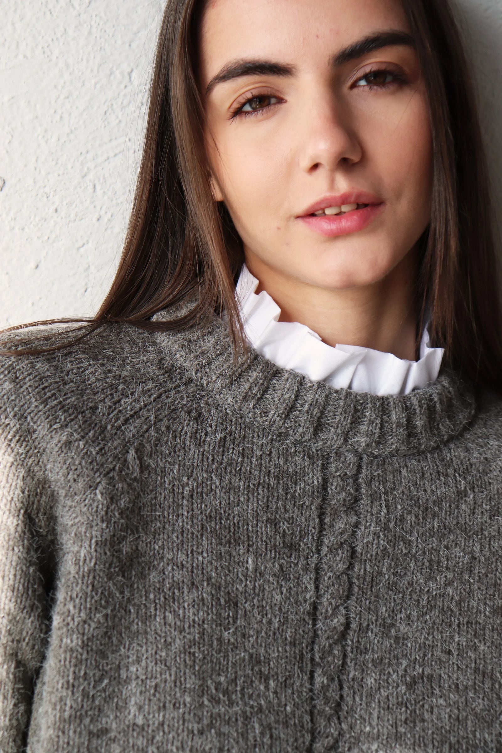 За този модел избрахме висококачествена прежда от мерино вълна, бейби алпака и мохер — въздушна, топла и изключително приятна на допир.