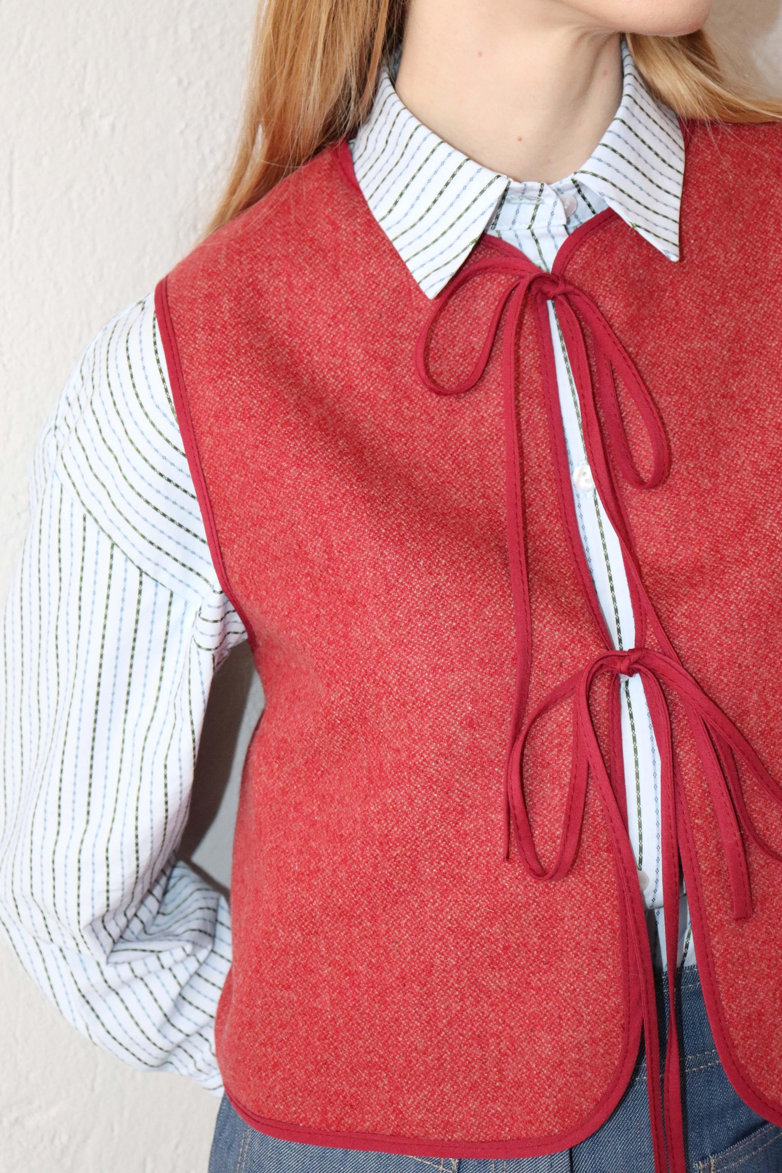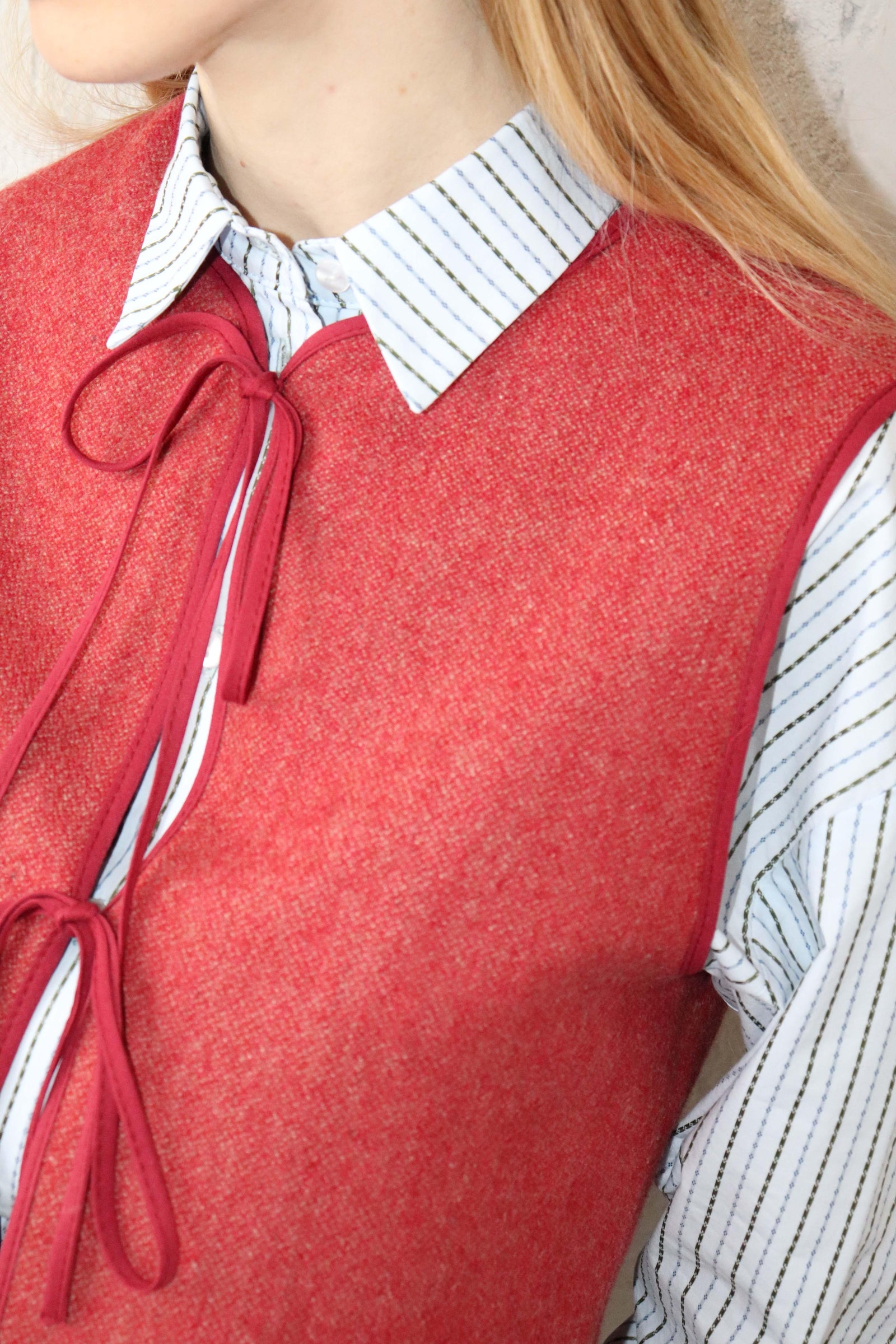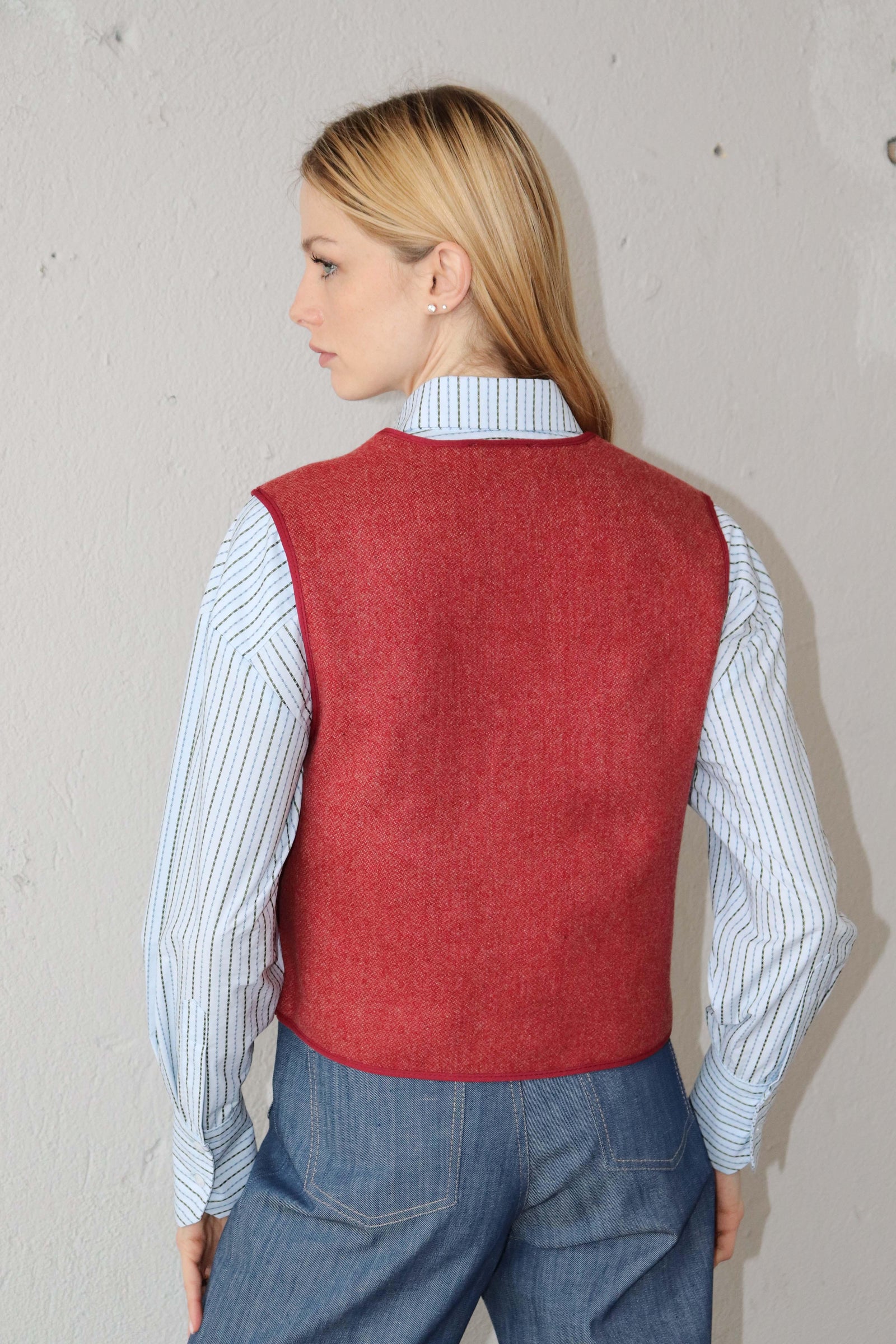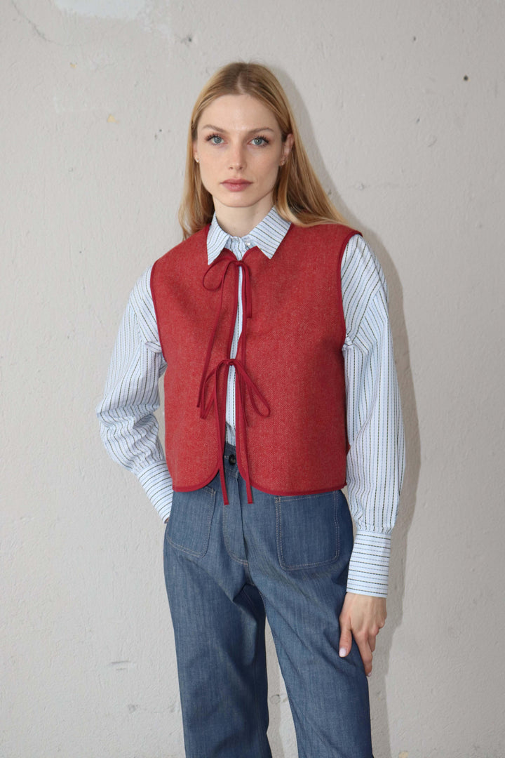 Късо вълнено елече в червено.