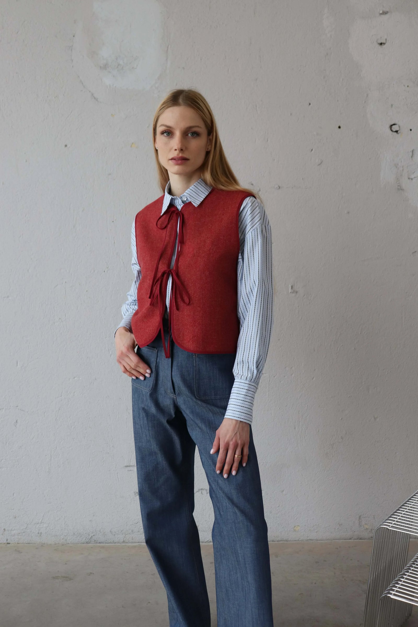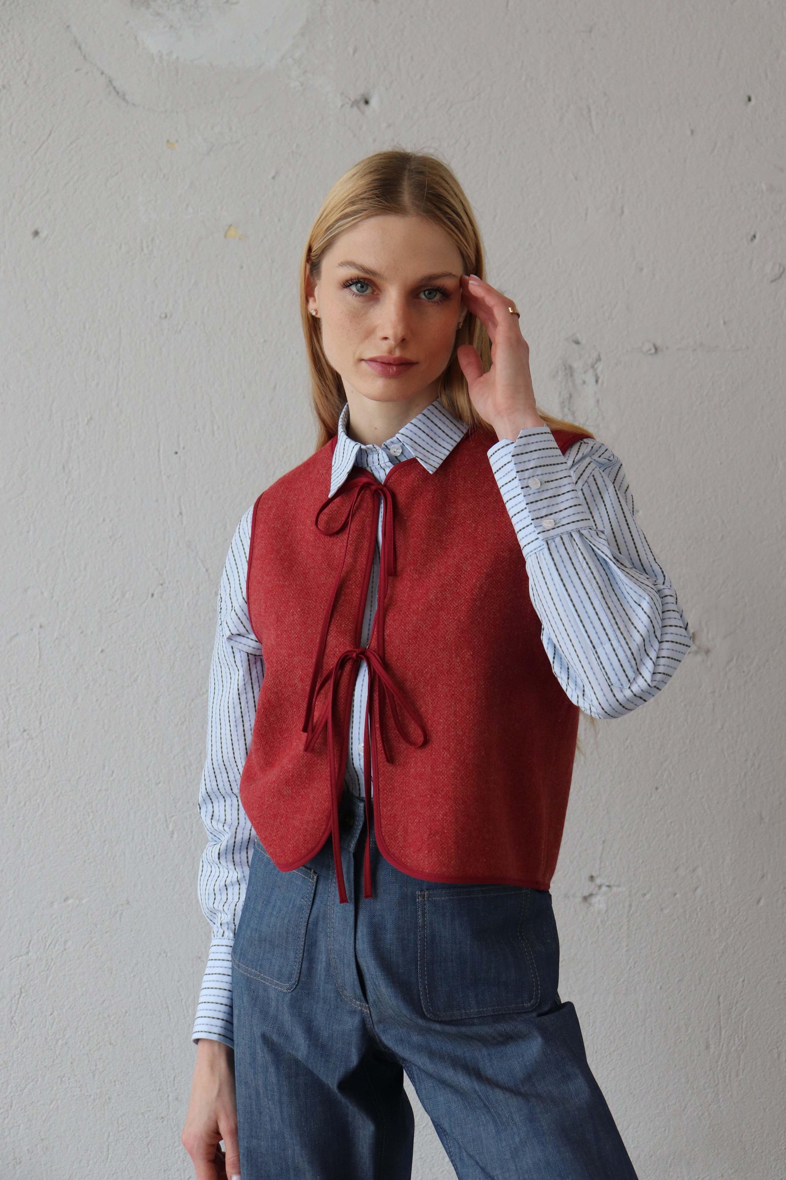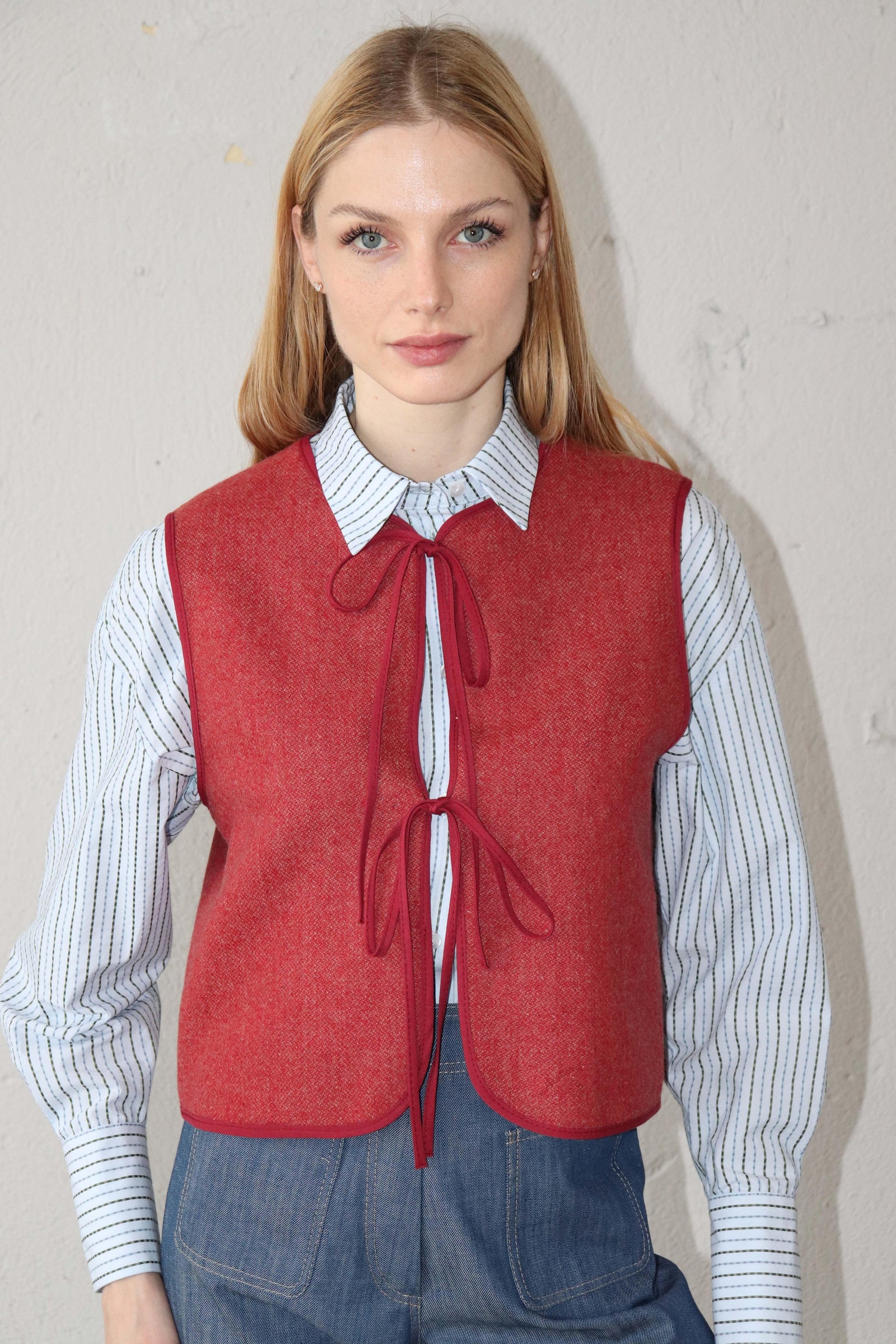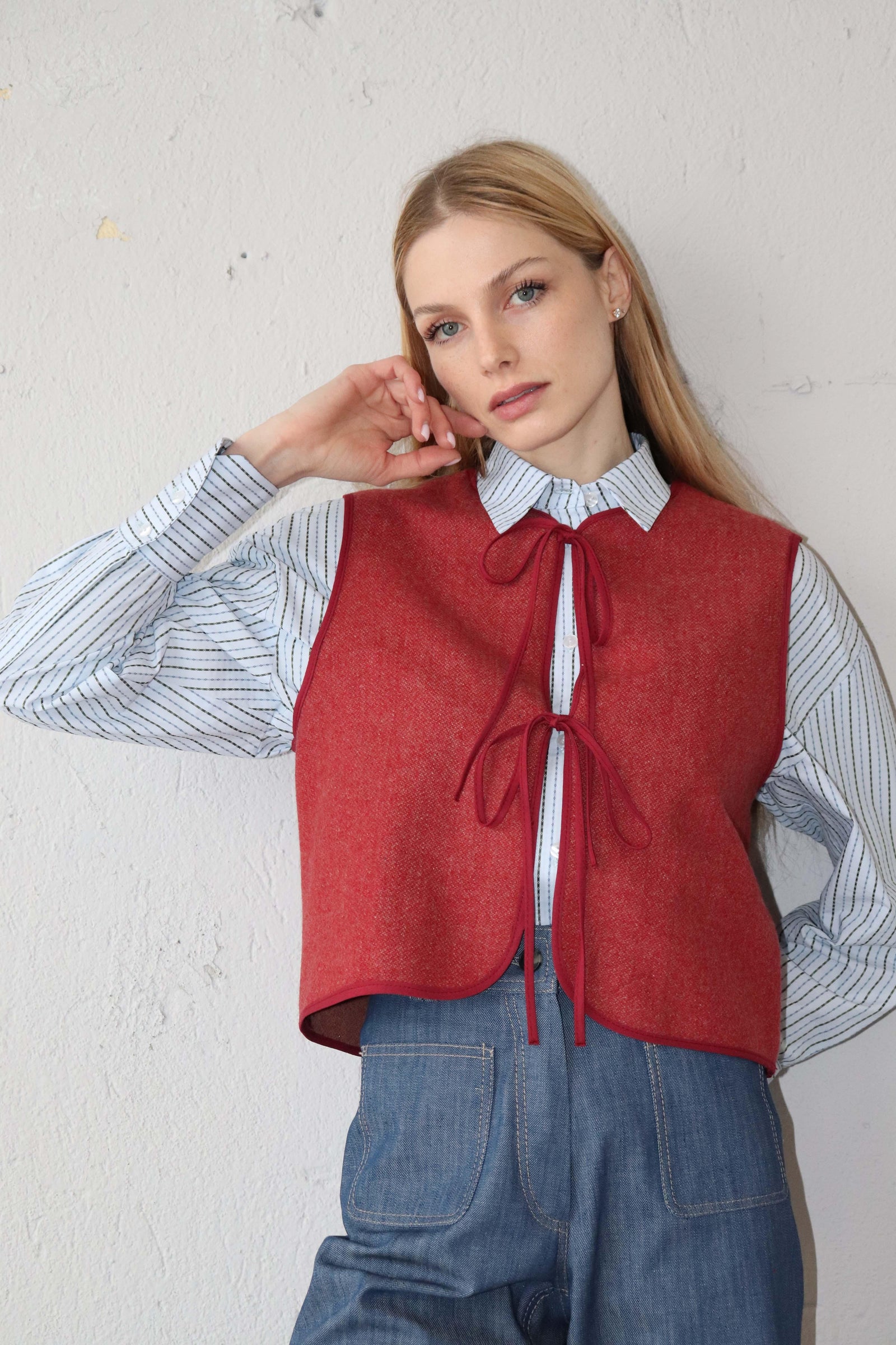 Късо вълнено елече в червено.