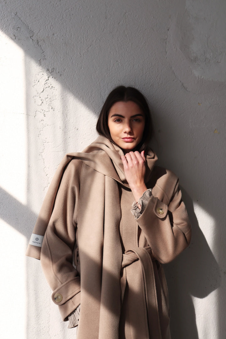 Може да се носи по различни начини – увит около врата или преметнат върху раменете, за да ви предпази от студа.